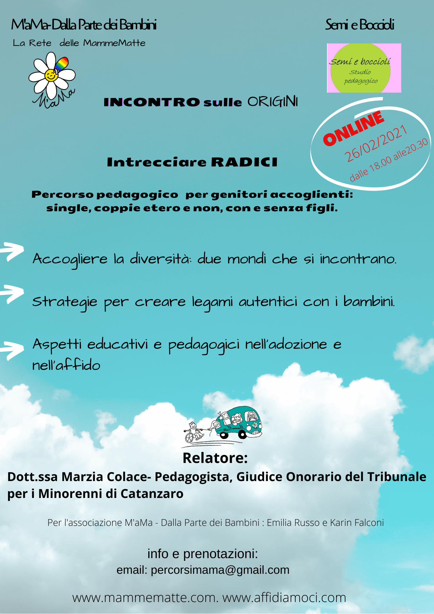 L’incontro Intrecciare Radici, su piattaforma Zoom, è aperto a tutti gli interessati al tema: genitori, figli adottivi e operatori.