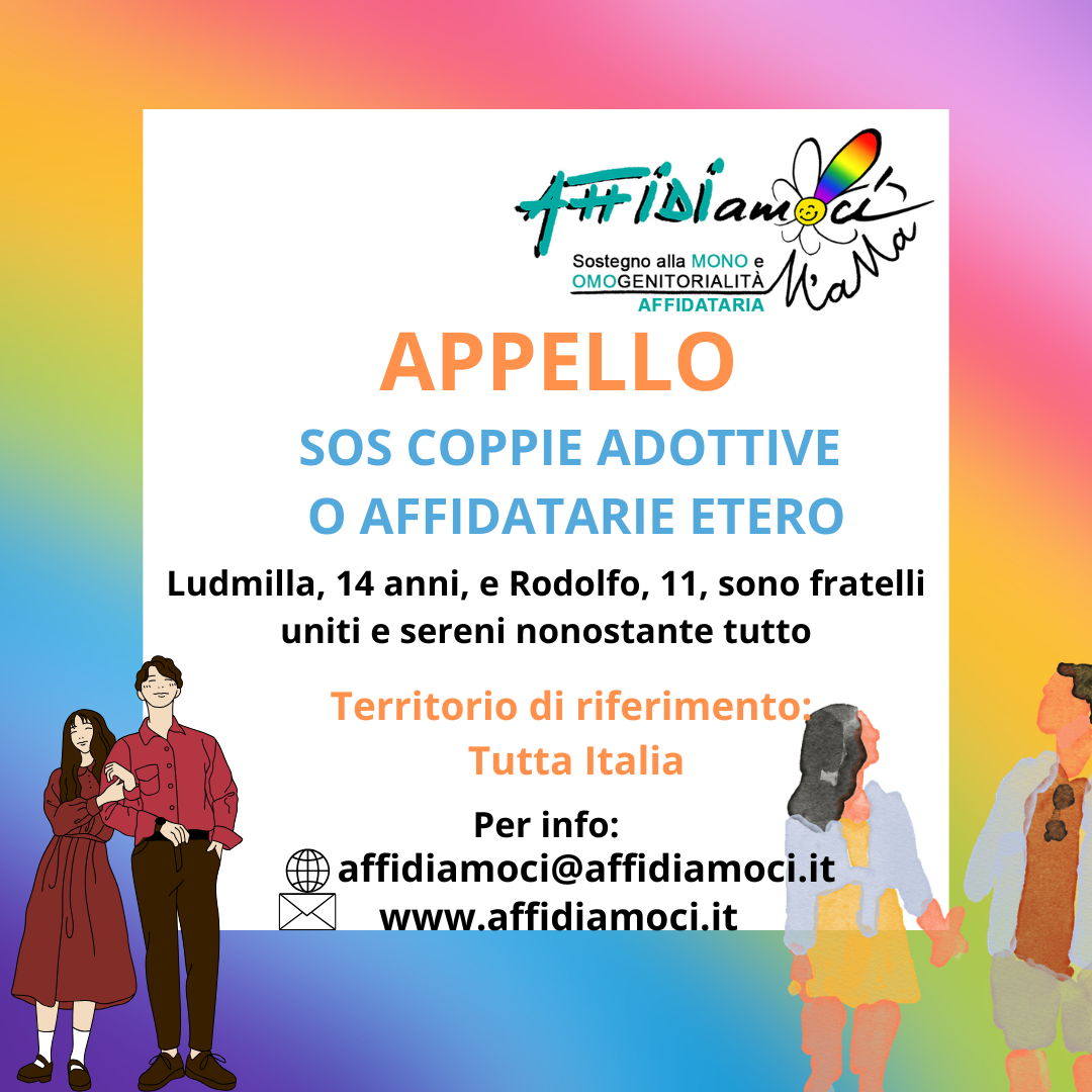 AFFIDIamoci (progetto M’aMa sulla mono e omogenitorialità affidataria) riceve mandato gratuito da Tribunali dell’intero territorio nazionale per cercare famiglie affidatarie omo e monogenitoriali per minori in attesa di famiglia (vedi APPELLI). AFFIDIamoci dopo aver raccolto, a titolo volontario, le candidature delle famiglie (opportunamente formate) invia in Tribunale le loro autopresentazioni e sarà solo il Tribunale a valutare l’idoneità dell’eventuale abbinamento con il minore.