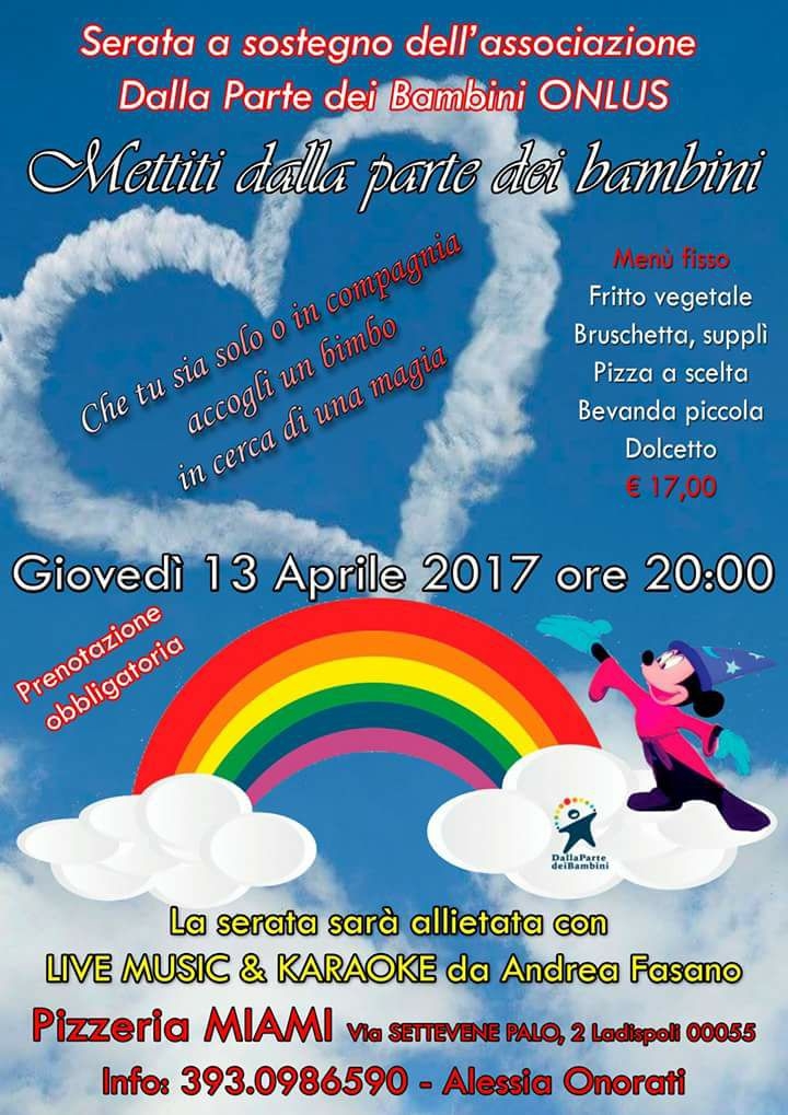 A Ladispoli, giovedi 13 aprile 2017, presso la Pizzeria MIAMI, l’ass.