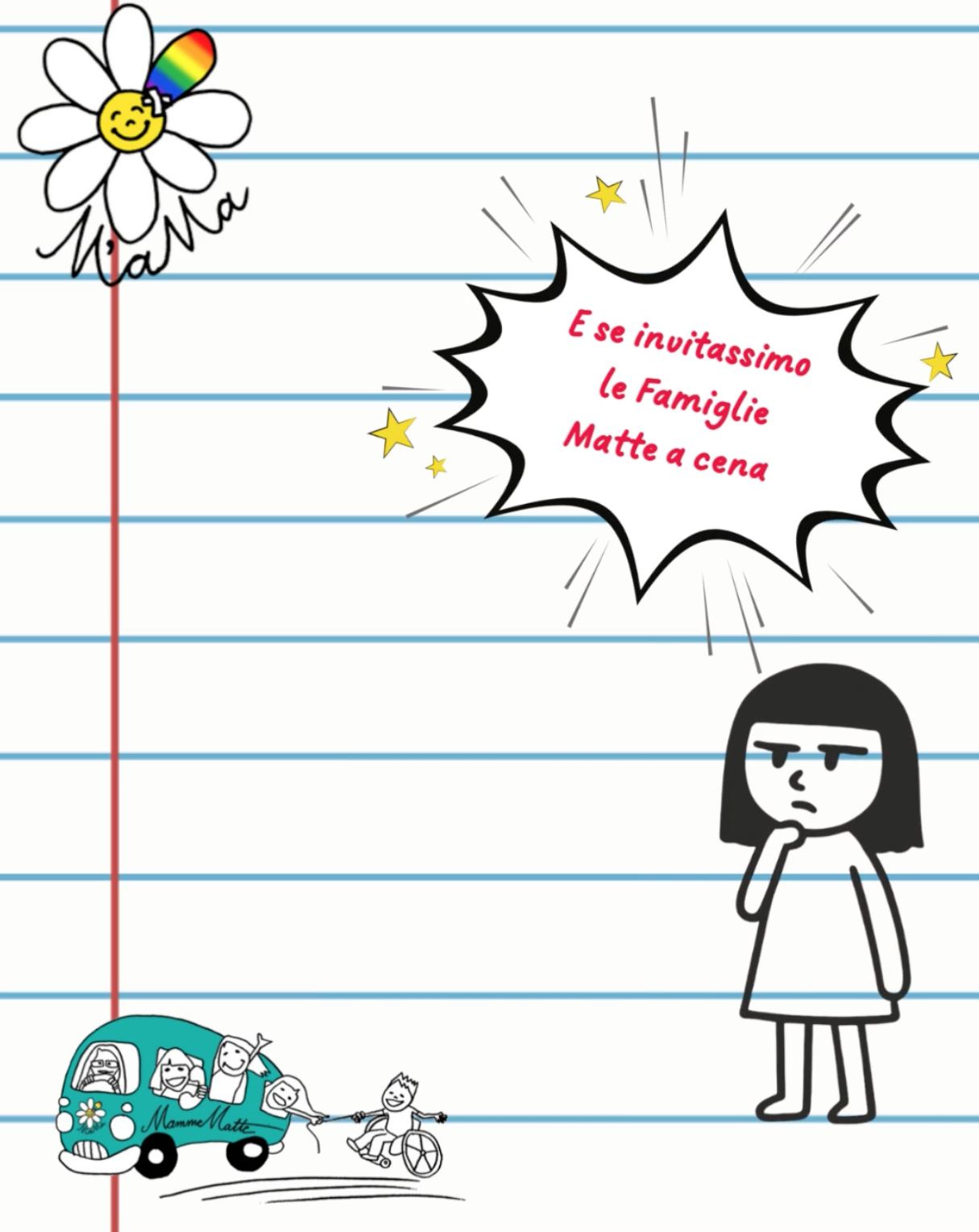Per questo le famigliematte di M’aMa (e AFFIDIamoci), il 20 settembre dalle ore 19:00, se ne andranno a cena insieme! Si siederanno a tavola con chi avrà voglia di parlare di affido e adozione come sappiamo fare noi: senza filtri, senza pose, senza aureole. Con le unghie spezzate, le emozioni autentiche e quella voglia matta di cambiare il mondo, un pezzetto alla volta.