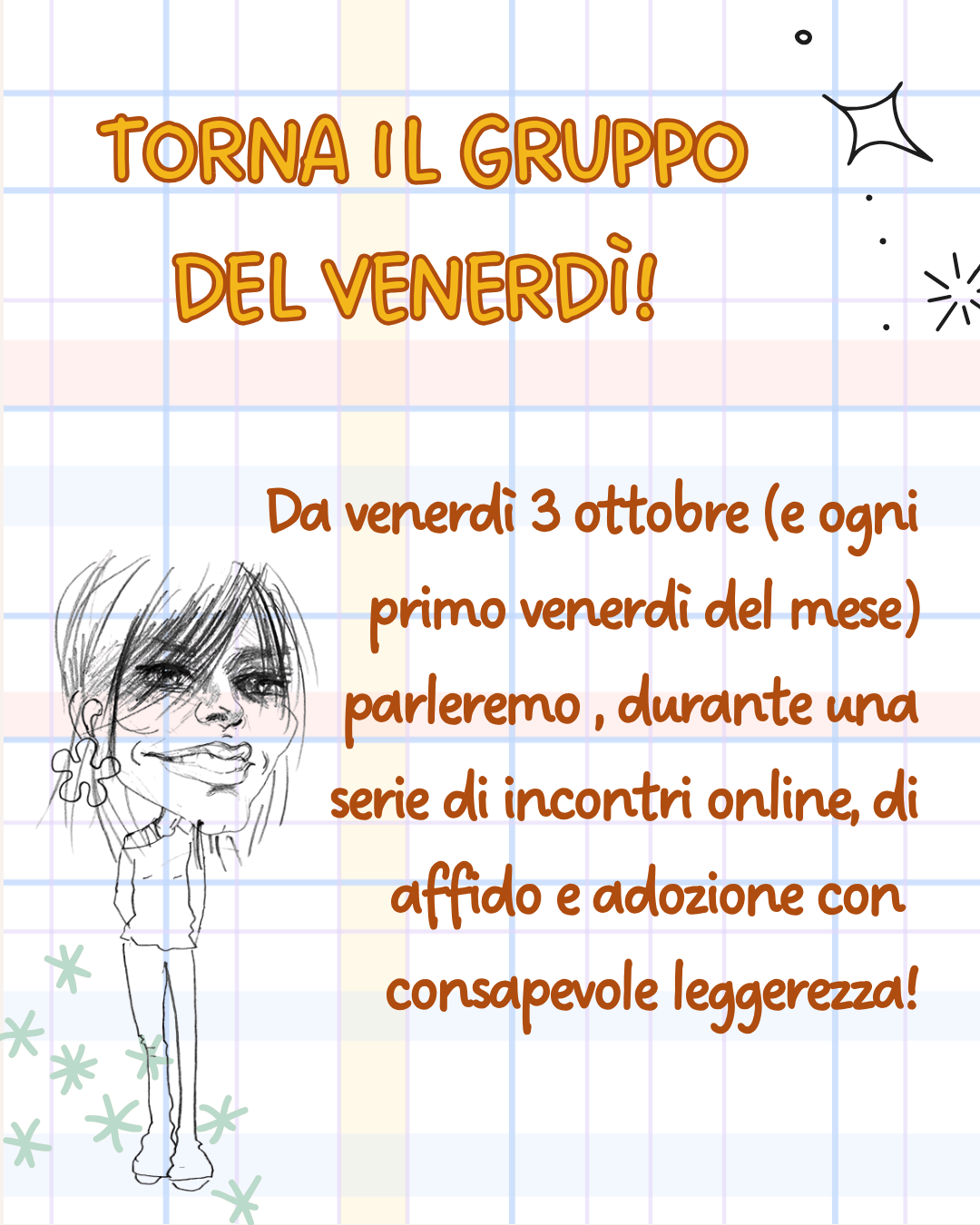 Stiamo tornando! Dal 3 ottobre ripartirà il GRUPPO DEL VENERDÌ AFFIDO E ADOZIONE.